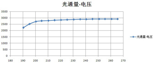 由圖中可見,采用這種自適應(yīng)調(diào)節(jié)以后,在不同的輸入電壓范圍內(nèi),其輸入功率,輸出光通量和整體光效都基本上保持不變。