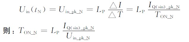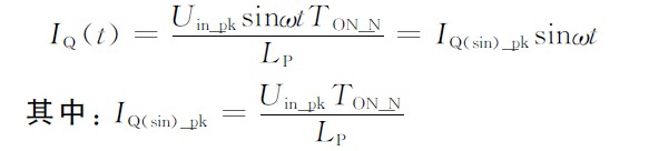 假設(shè)導(dǎo)通時(shí)間為常數(shù):TON_N = 常數(shù)(const),則上述MOS導(dǎo)通電流各點(diǎn)峰值IQ(sin)_pk組成的包絡(luò)就形成了正弦規(guī)律。