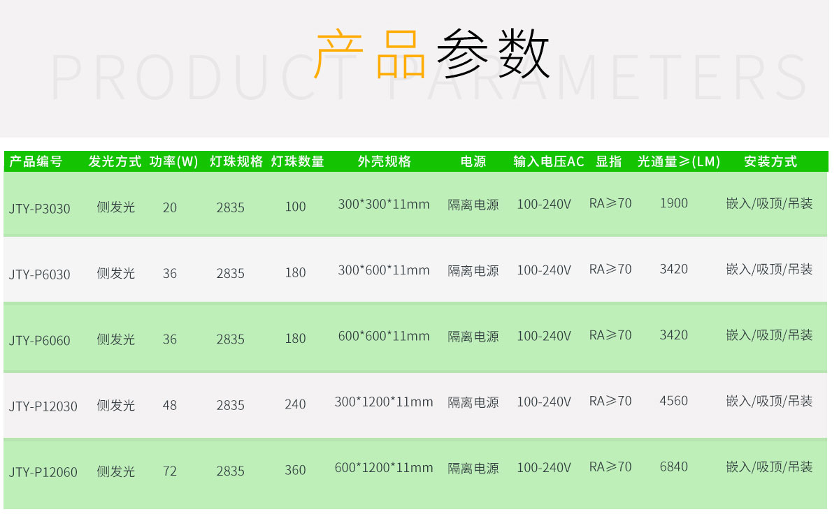 側(cè)發(fā)光 48 2835 240 300*1200*11mm 隔離電源 100-240V RA≥70 3456 嵌入,吸頂,吊裝